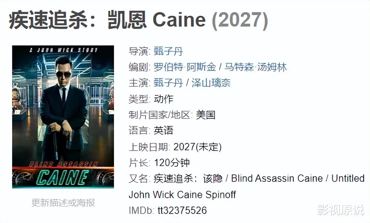 这部由甄子丹自导自演的好莱坞处女作《凯恩传》,故事剧情将延续《疾速追杀4》,讲述了甄子丹饰演的凯恩,在脱离了全球刺客组织高卓会后,展开全新冒险的故事。