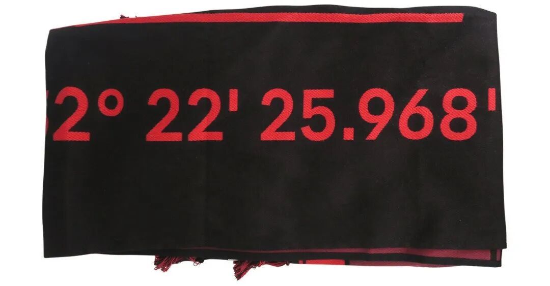 标注51.6784° N, 2.4084° W(英国南部的Hampshire地区)坐标的Burberry围巾 | 图源:Designer Exchange