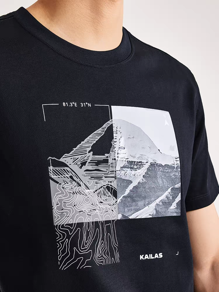 除了纪念品牌发源地与消费市场,一些经纬度坐标还带有与登山、探险等相关的别样寓意。凯乐石(Kailas)的冈仁波齐系列,在图案中特地使用了这一“神山”的地理坐标,不仅是简单且富有科技感的标记,更代表着无数登山爱好者的终生理想。