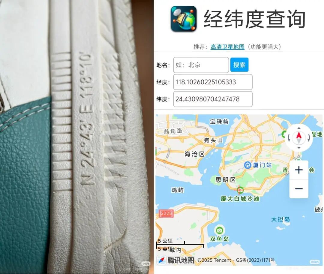 361度运动鞋侧面的坐标,与公司厦门总部的地址契合 | 图源:小红书@收手吧凉皮,外面都是海蜇,已获授权